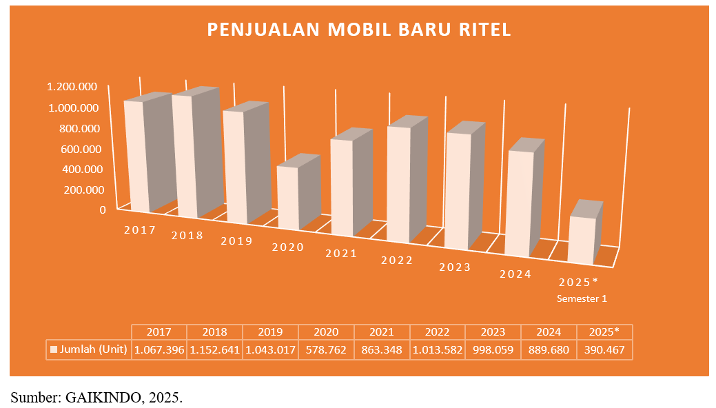 Secara umum, penjualan mobil baru ke konsumen cenderung menurun dalam beberapa tahun terakhir. Pasca pandemi, penjualan mobil ritel sempat pulih dan mencapai angka penjualan 1 juta unit pada tahun 2022. Setelah itu, penjualan ritel perlahan menurun.